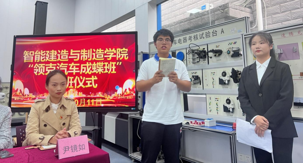 上半年,华新学院智能建造与制造学院成为成都市经开区技能人才培育联盟成员,在区经信局、人社局及联盟共同促进下,学院与领克汽车签定了校企合作协议,经前期多次磋商,双方达成“领克汽车成蝶计划”订单班校企共同培养项目。经过多次征求意见和选拔,此次确定“2023级新能源汽车技术1班”为首批订单班。