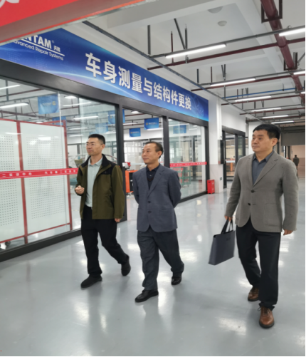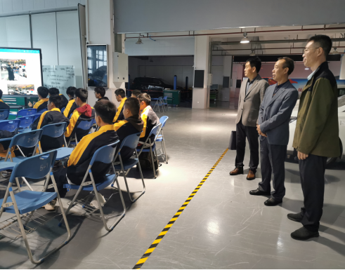 会后,刘堂俊带领刘斌一行参观了汽车实训中心、产教融合中心等,详细介绍了汽车专业群实训基地建设和产教融合等方面的情况。