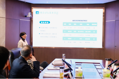 教育学院院长岳训涛介绍了教育学院基本情况,并针对学院专业设置与定位、专业建设成效、存在的问题及改进措施等方面行了深度剖析。