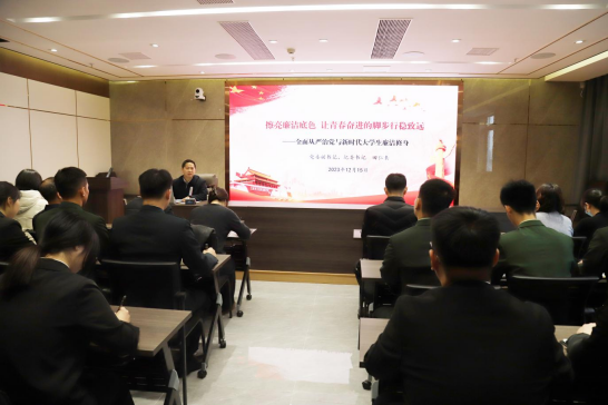 青年是国家的未来、民族的希望。大学是青年学生成长成才“拔节孕穗”的关键时期。为深入学习贯彻党的二十大精神和习近平总书记关于新时代青年工作的重要论述,落实立德树人根本任务,加强大学生廉洁教育,12月15日,四川开放大学党委副书记、纪委书记田仁来为华新学院退役军人学生、入党积极分子、预备党员、学生会及班团干部作了一次廉洁教育专题讲座。学院党委副书记、院长刘斌,纪委书记邓忠参加。