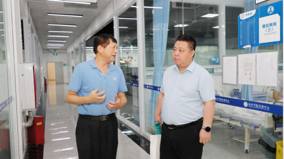 座谈会前,刘纯龙一行实地参观了医护康院学院实训室、服装及蜀绣专业实训室、汽车实训室、烹饪实训室,考察了实训设施和教学环境。