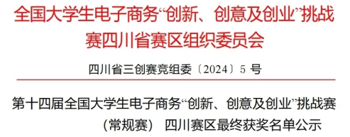 四川省大学生电子商务“创新、创意及创业”挑战赛(“三创赛”)暨全国大学生电子商务“创新、创意及创业”挑战赛四川省赛区决赛由四川省教育厅主办,吸引了全省72所高校、20000余支团队参赛参加。经过初赛选拔出200余支团队进入现场赛(小组赛与决赛)。华新学院数字经济学院参赛团队最终脱颖而出,取得了一等奖的好成绩。这一成绩不仅是对学院师生团队辛勤付出的肯定,更是对学院在电子商务领域教育教学和创新创业工作的高度认可。