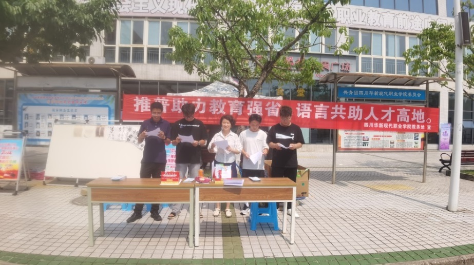 9 月 19 日,为响应《四川省教育厅转发<教育部等九部门关于开展第27届全国推广普通话宣传周活动的通知>的通知》文件要求,四川华新现代职业学院隆重开展了第 27 届全国推广普通话宣传周活动。本次活动得到了学院领导的高度重视,副院长翁艳亲自参加,为活动增添了强大的动力。