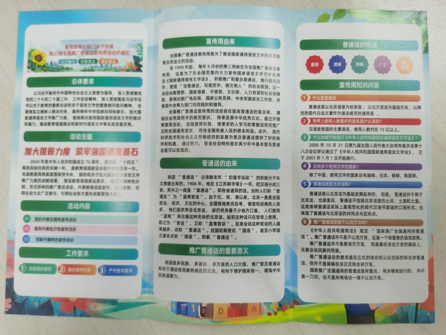 校园里,随处可见醒目的横幅和精美的海报。“推普助力教育强省,语言共助人才高地”等标语时刻提醒着师生们使用普通话的重要性。