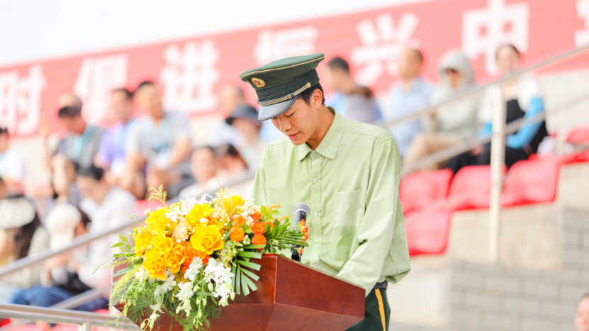 新生代表、2024级计算机与大数据学院钟裕东表示,将把军训培养起来的力争上游、不怕艰苦、顽强拼搏的精神发扬光大,深怀理想与信念,勤奋学习,以坚强的意志面对挑战,以实干的精神砥砺前行,争做德智体美劳全面发展的社会主义建设者和接班人。