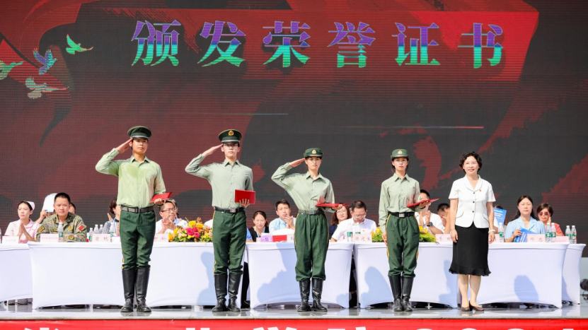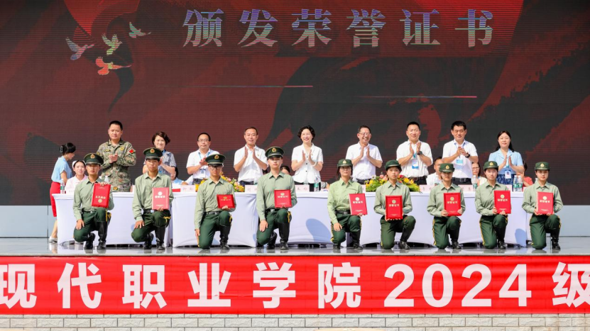 随后,华新学院党委副书记李瑜宣读了《四川华新现代职业学院2024级新生军训表彰决定》,对在军训中表现突出的集体和个人进行了表彰。