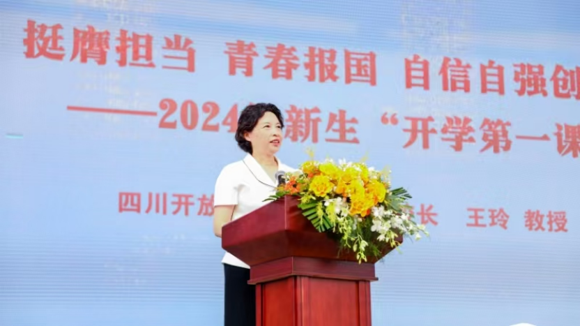 王玲代表华新学院的举办方——四川开放大学,热烈欢迎各位同学从天南海北汇聚华新,成为华新大家庭的一员。她表示,四川开放大学将一如既往地重视和支持华新学院的改革和发展,华新学院也将倾全力助华新学子成才。