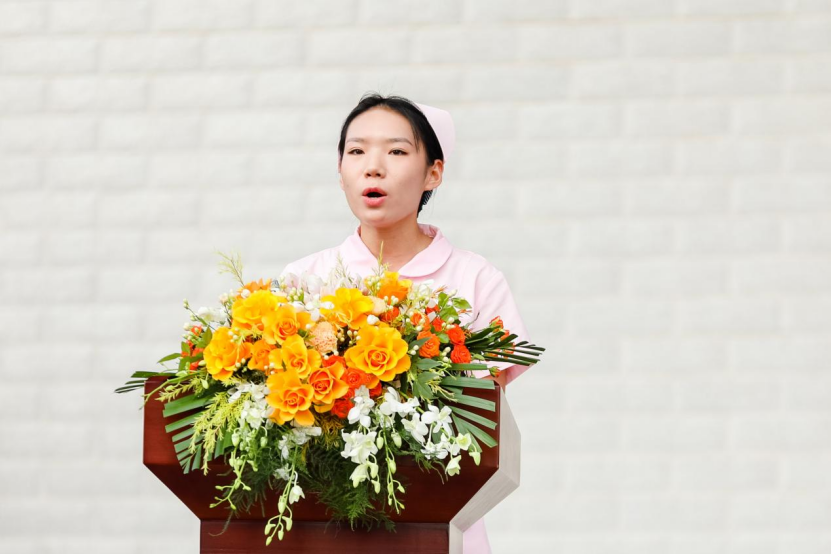 在校生代表、2022级医护康养学院护理专业张慧慧在发言中勉励2024级新生勤奋学习、追求卓越,培养兴趣、全面发展,团结协作、共同进步,将个人发展与社会需求结合起来,以青春之我、奋斗之我,为民族复兴铺路架桥,为祖国建设添砖加瓦。