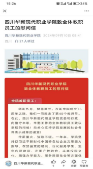 为大力弘扬尊师重教传统,教师节前后,学院通过官网、微信公众号等平台为全院教师送去教师节慰问,并先后开展“为教师亮灯”“迎中秋,感师恩”等多项祝福活动。