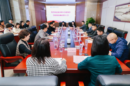 10月30日下午,龙泉驿区教育局党组书记、局长曾涌,区新经济和科技局党组成员、区科协主席刘国松率区政府工作组一行莅临华新学院走访调研。本次调研旨在深化校地合作,进一步推进区域经济社会发展。华新学院党委副书记、院长刘斌,党委副书记李瑜、副院长周勇、纪委书记、工会主席邓忠、副院长翁艳及相关部门主要负责人陪同调研并出席座谈会。