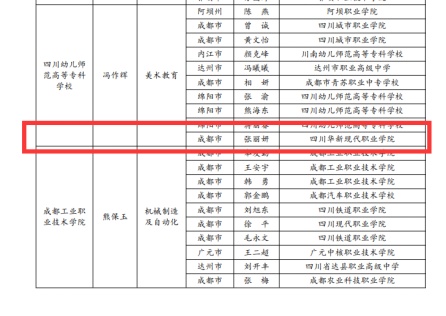 两位老师的成功入选是四川华新现代职业学院在职业教育领域取得的重要成果,也是学院不断追求卓越、提升教育质量的体现,将激励学院继续在职业教育领域发挥更大作用,培养更多优秀职业教育人才。全体教师将以此为榜样,学习新理念,提升专业技能和个人素养,通过不懈努力,在教育教学、科研创新、人才培养、服务社会等方面取得更加优异的成绩,实现个人职业生涯的新跨越,为华新教育事业增砖添瓦。