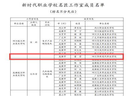 近日,四川省教师发展中心公布了新时代职业学校名师(名匠)名校长工作室成员名单,四川华新现代职业学院文创旅游学院张丽妍成功入选新时代职业学校名师工作室成员名单、计算机与大数据学院雷莹成功入选新时代职业学校名匠工作室成员名单,标志着学院在培养职业教育名家方面取得新突破。