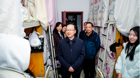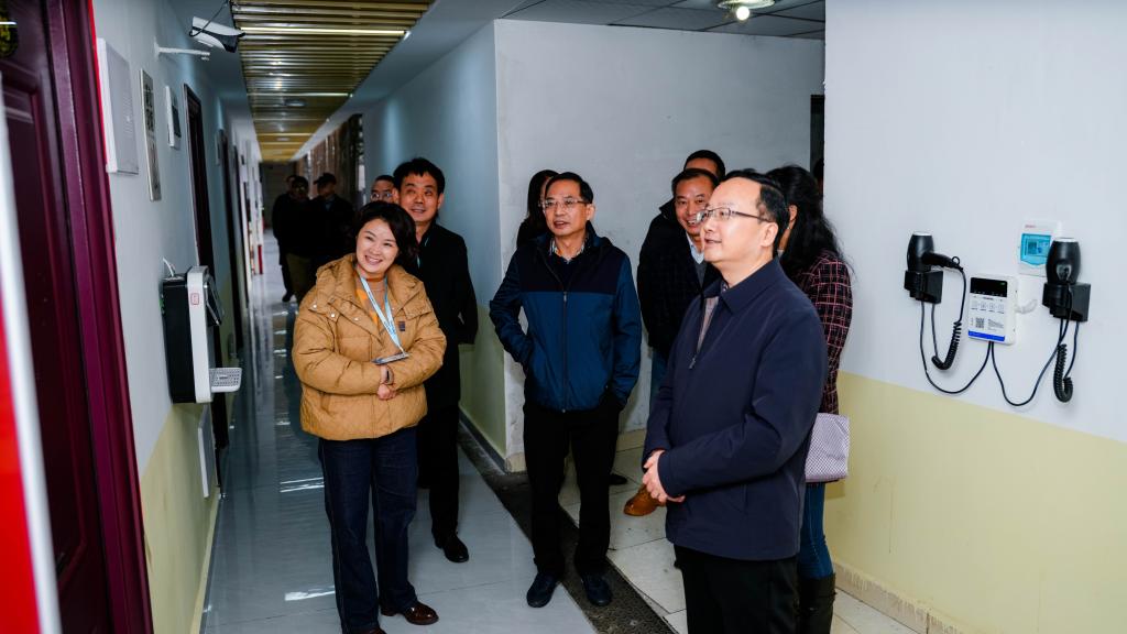 会前,罗晓东一行深入医护学院实训中心,艺术学院、文创旅游学院、智能建造与制造学院、数字经济学院实训室,汽修实训室、烹饪实训室等校内实习实训基地,博学楼、食堂、学生公寓、图书馆等学习生活区域,实地详细查看了解学院相关专业建设发展、校园环境和师生教学、学生住宿情况,不时与师生亲切交谈,对他们表达关心与问候,勉励青年大学生珍惜时光,不负韶华,勤学苦练,成就事业。