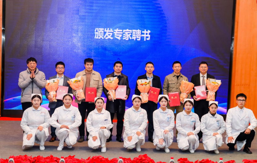 讲座开始前,医护康养学院院长伍小飞为到场的6名专家颁发了专业指导委员会聘书。这一举措不仅体现了学院对专家团队的重视和认可,更为双方未来的深入合作奠定了坚实的基础。学院希望专家们在以后的专业建设中发挥专业优势和影响力,助力学院培养更多优秀的医护康养人才。