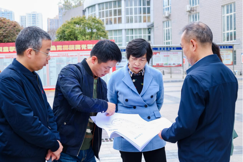 组图 王玲实地考察校园区域改造情况