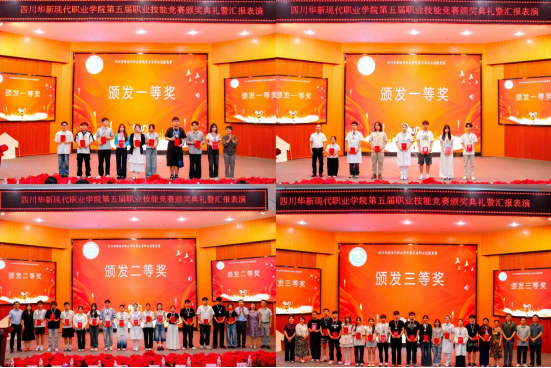 学院领导为获奖代表逐一颁发荣誉证书和奖牌,充分肯定同学们在技能竞赛中的优异表现。三等奖、二等奖和一等奖获奖选手依次登台领奖,充分展现出华新学子昂扬向上的精神风貌。