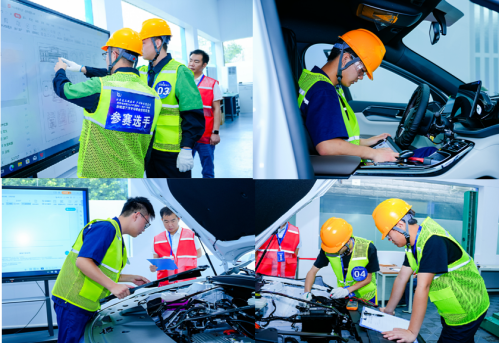 竞赛现场气氛紧张热烈,来自各院校的选手们技艺娴熟,配合默契,快速完成电池系统故障诊断、电驱动总成调试等高难度任务,其中多支队伍采用创新方法解决高压上电异常等典型故障,充分展现出我区新能源汽车专业学生的理论水平和精湛的技艺水平。各参赛选手和指导老师纷纷表示,参加此次竞赛收获良多,大赛既是展现行业成果的“阅兵场”,更是培育工匠的“练兵台”。