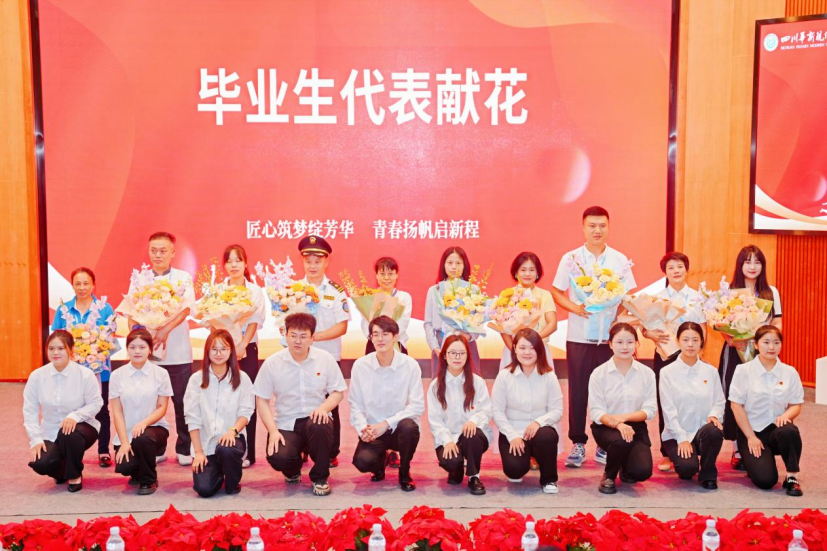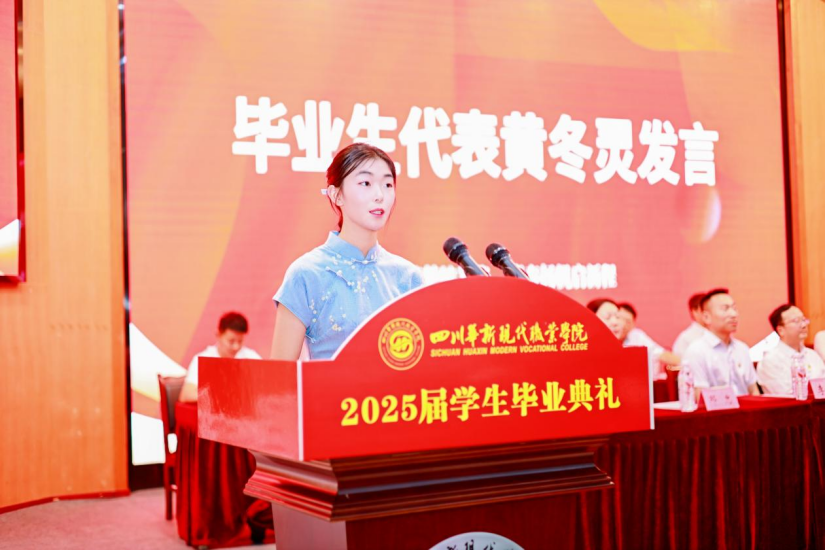 “三年前攥着录取通知书穿过校园的青涩模样,如今已化作实训室里独当一面的从容。”数字经济学院黄冬灵作为毕业生代表发言,她回忆起在智慧校园中“理论照进现实”的蜕变,号召同窗“带着‘知行合一’的烙印奔赴山海,让平凡岗位成为点亮微光的舞台”。