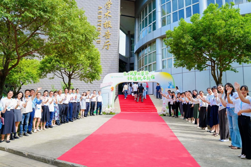 典礼启幕前,学院领导与教师代表身着正装,分列学术报告厅入场通道两侧,以热烈的掌声和亲切的笑容迎接毕业生入场。