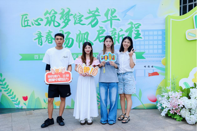 随风飘扬的毕业横幅,各具特色的祝福展板,鲜花簇拥的毕业主题拱门,2025 届毕业生作品展和签名墙等毕业元素暖心点缀着校园,充满了对毕业学子的真挚祝福与殷殷期盼,吸引了毕业生纷纷参展签名打卡。