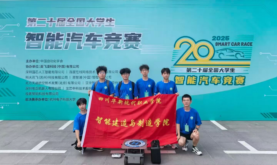 8月19至20日,第二十届全国大学生智能汽车竞赛总决赛在杭州电子科技大学隆重举行。全国大学生智能汽车竞赛是教育部高等教育司支持、中国自动化学会主办的全国性大学生学科竞赛,被列为教育部认可的A类赛事。火箭军工程大学、东北大学、重庆大学等在内的294所高校共700余支队伍参加本届竞赛角逐。四川华新现代职业学院凭借扎实的专业功底、从容的临场应变与高效的团队协作,在高手云集、竞争激烈的比赛中,斩获全国总决赛一等奖。