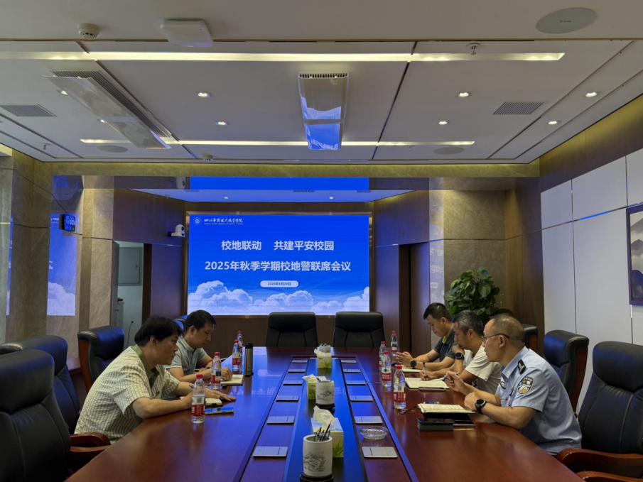 为深入贯彻落实教育部、省教育厅关于校园安全工作的部署要求,深化警校协同、强化校地联动,共同做好校园安全稳定工作,8月29日上午,四川华新现代职业学院召开2025年秋季学期校地警联席会议。西河派出所所长曾浩、副所长陈武,西河街道平安办负责人赖庆康,学院保卫处处长刘祎、学工部副部长任勇军及双方相关工作负责人参会。