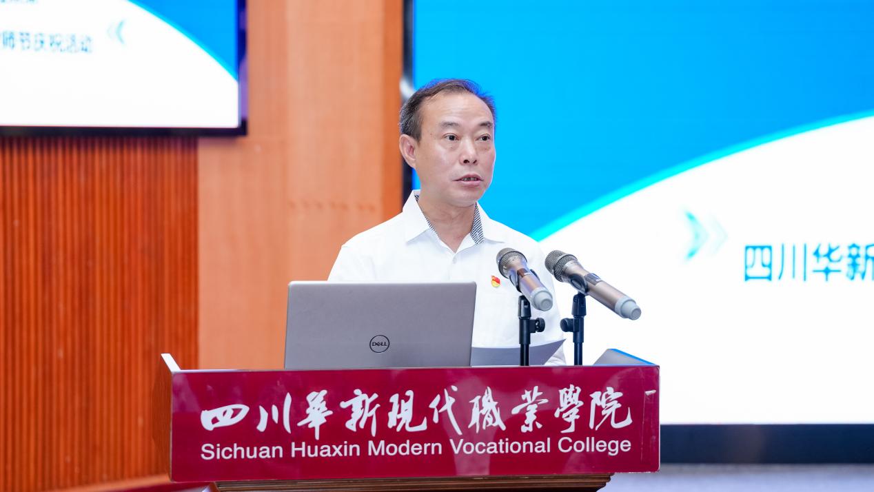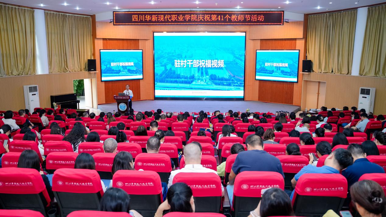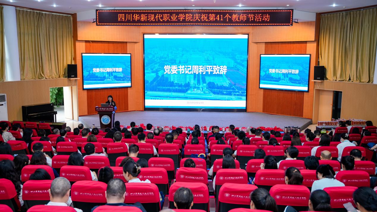 9月10日上午,四川华新现代职业学院在学术报告厅隆重举行第41个教师节庆祝大会。本次大会以“以教育家精神铸魂强师,谱写教育强国建设华章”为主题,旨在弘扬尊师重教优良传统,激励广大教师坚守育人初心,担当时代使命。四川开放大学党委副书记、华新职院党委书记周利平等学院党政领导班子全体成员、全体教职员工欢聚一堂,共同庆祝属于教育工作者的光荣节日。学院党委副书记、院长刘斌主持庆祝大会。