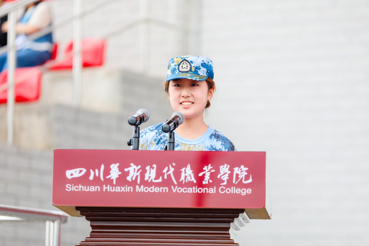 新生代表刘怡雯发言时表示,通过军训锤炼了意志、增强了家国情怀、明确了责任担当。她号召全体新生传承“清廉如竹”的品格,弘扬工匠精神,以专业技能报效祖国。