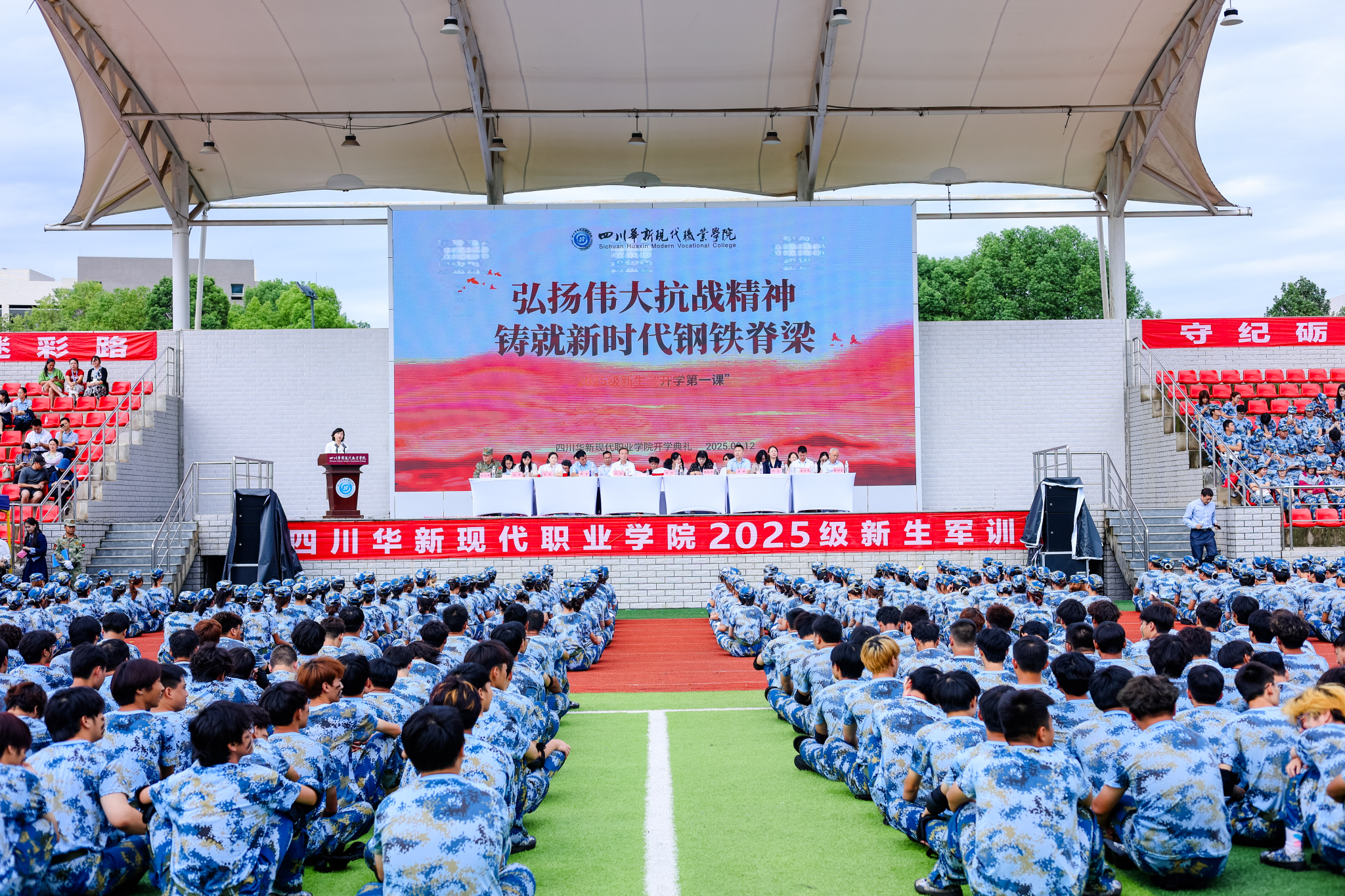 “华”章为笔书壮志,逐梦不息启“新”程。9月12日上午,四川华新现代职业学院2025级新生开学典礼暨“开学第一课”在学院运动场隆重举行。2025级新同学怀揣青春热忱与梦想,开启属于新“华新人”的青春篇章。