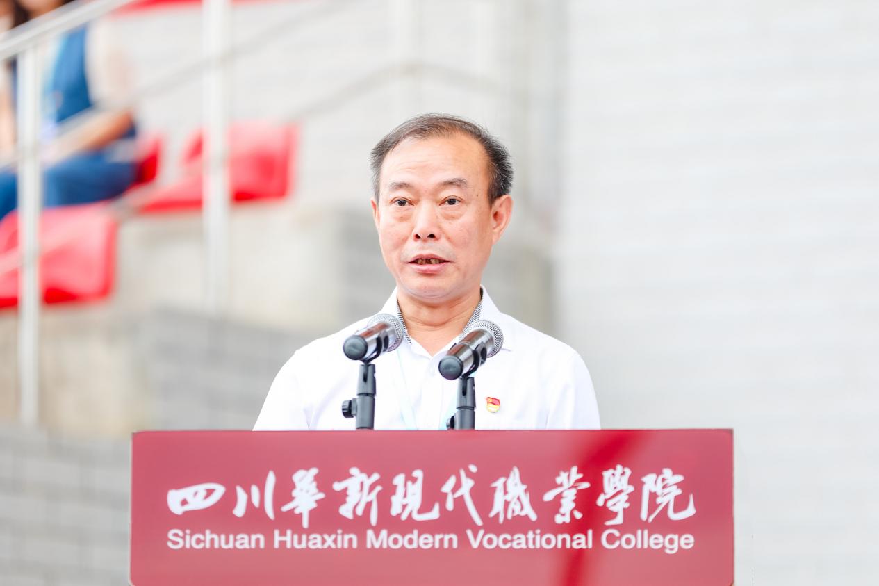 四川开放大学党委书记王玲出席并讲授“开学第一课”,四川开放大学党委副书记、华新职院党委书记周利平等学院全体领导班子成员,全体教职工及2025级新生共同参加典礼。周利平以“青春正逢盛世,奋斗恰当其时”为题作开学典礼致辞。学院党委副书记、院长刘斌主持。典礼在庄严的国歌声中拉开帷幕。