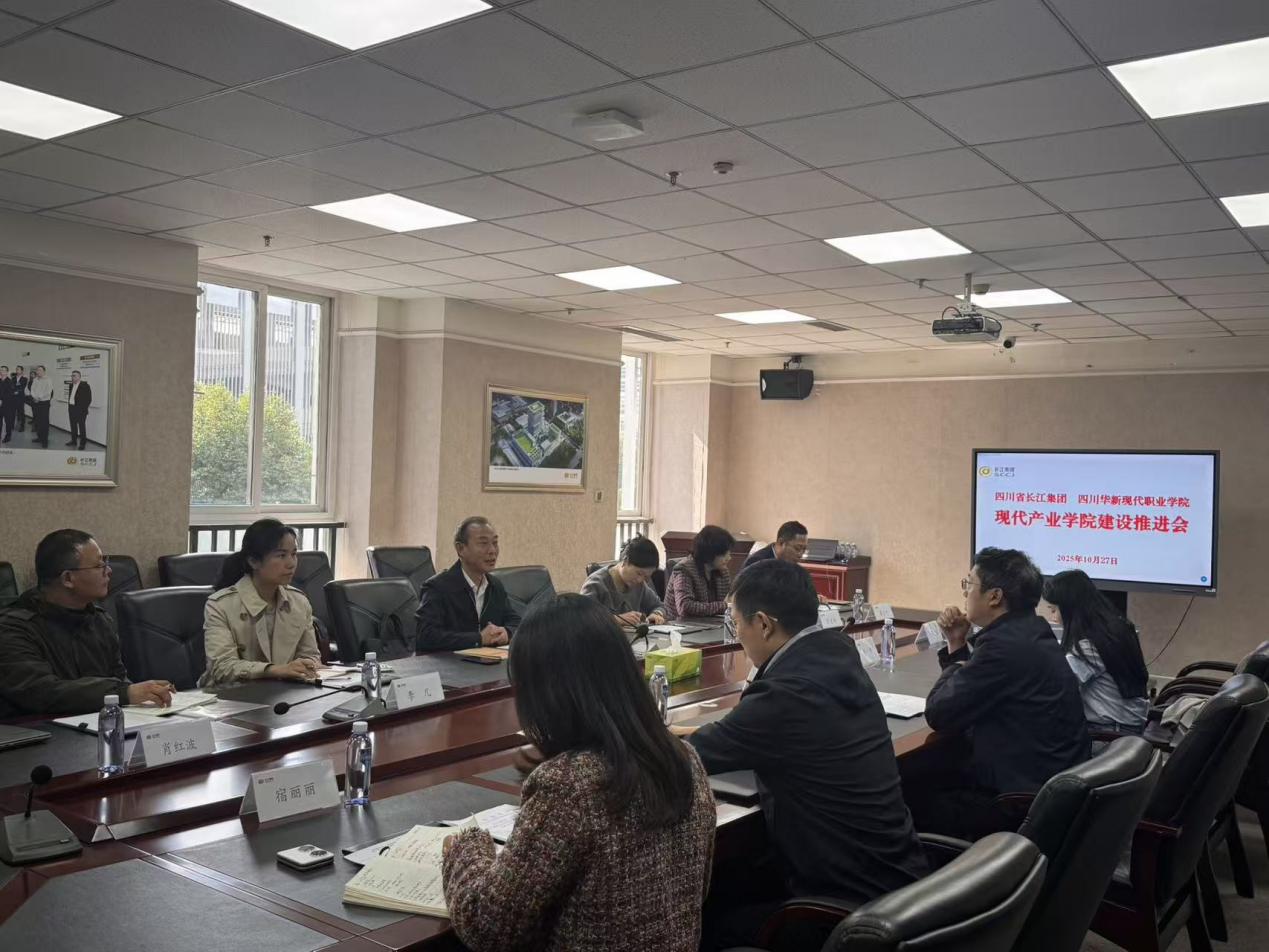10月27日下午,四川华新现代职业学院党委副书记、院长刘斌率队赴四川省长江集团有限公司访问交流,双方围绕共建现代产业学院举行专项洽谈。长江集团党委书记、董事长赵毅,产教融合部执行董事兼总经理尚雪及公司相关管理层人员出席洽谈并参与研讨。