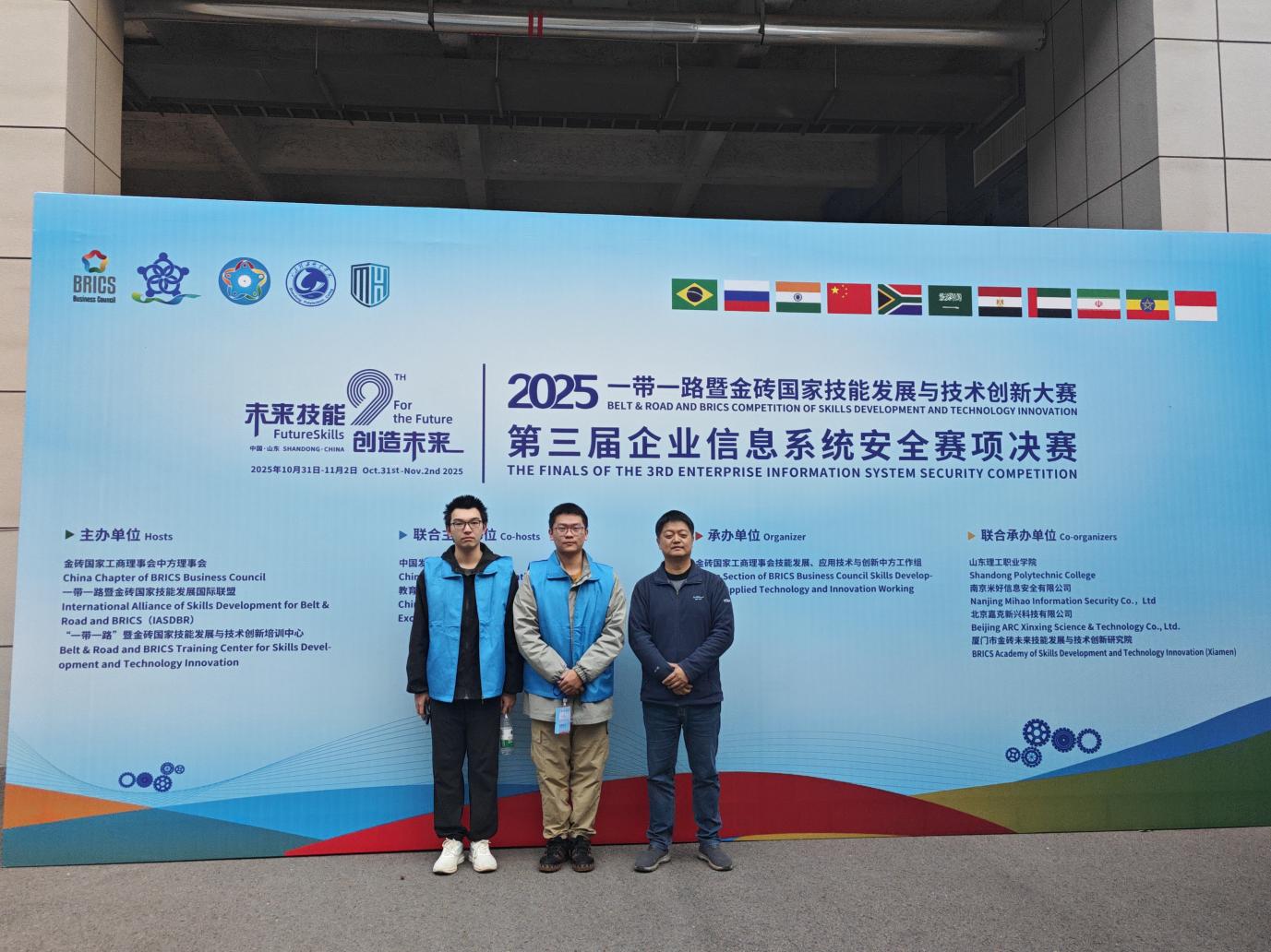 近日,2025一带一路暨金砖国家技能发展与技术创新大赛“企业信息系统安全赛项”全国决赛在山东理工职业学院结束。计算机与大数据学院参赛队伍凭借扎实的专业技能和出色的临场发挥,最终斩获全国三等奖。