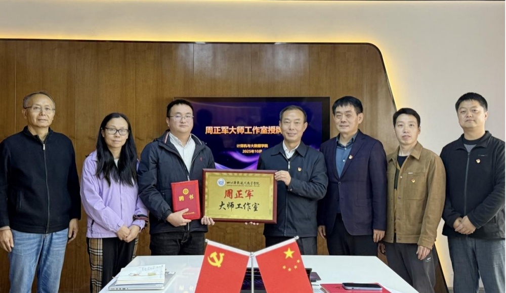 近日,华新职院举行了“周正军大师工作室”授牌仪式。学院党委副书记、院长刘斌,副院长周勇,计算机与大数据学院负责人,成都织数科技有限公司总经理周正军出席仪式。学院师生代表共同见证了这一产教融合平台的重要时刻。