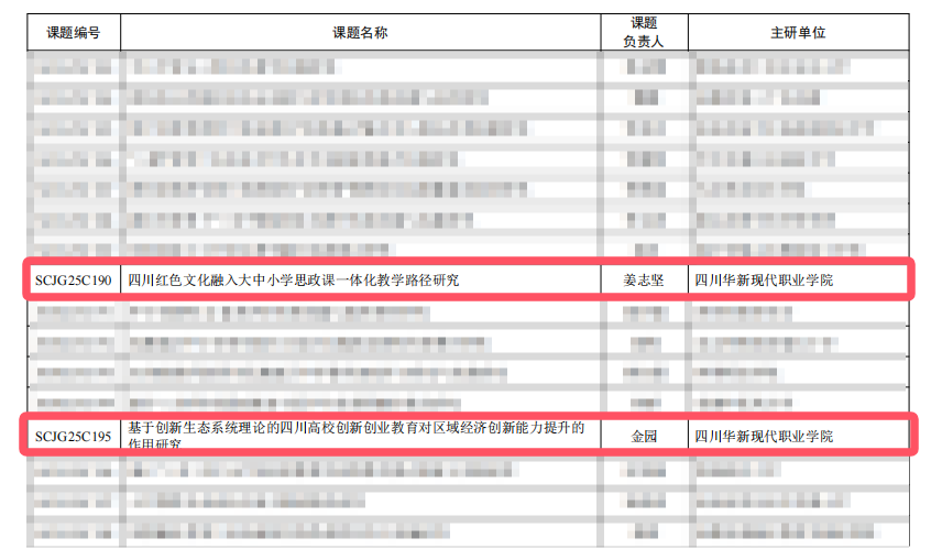 11月6日,2025度四川省教育科学规划课题立项名单正式公布,华新职院2项课题获批立项,实现了高层次科研项目申报的重要突破。