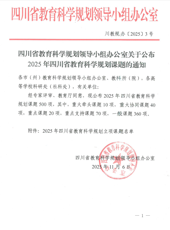 图一 2025 年度四川省教育科学规划课题立项文件