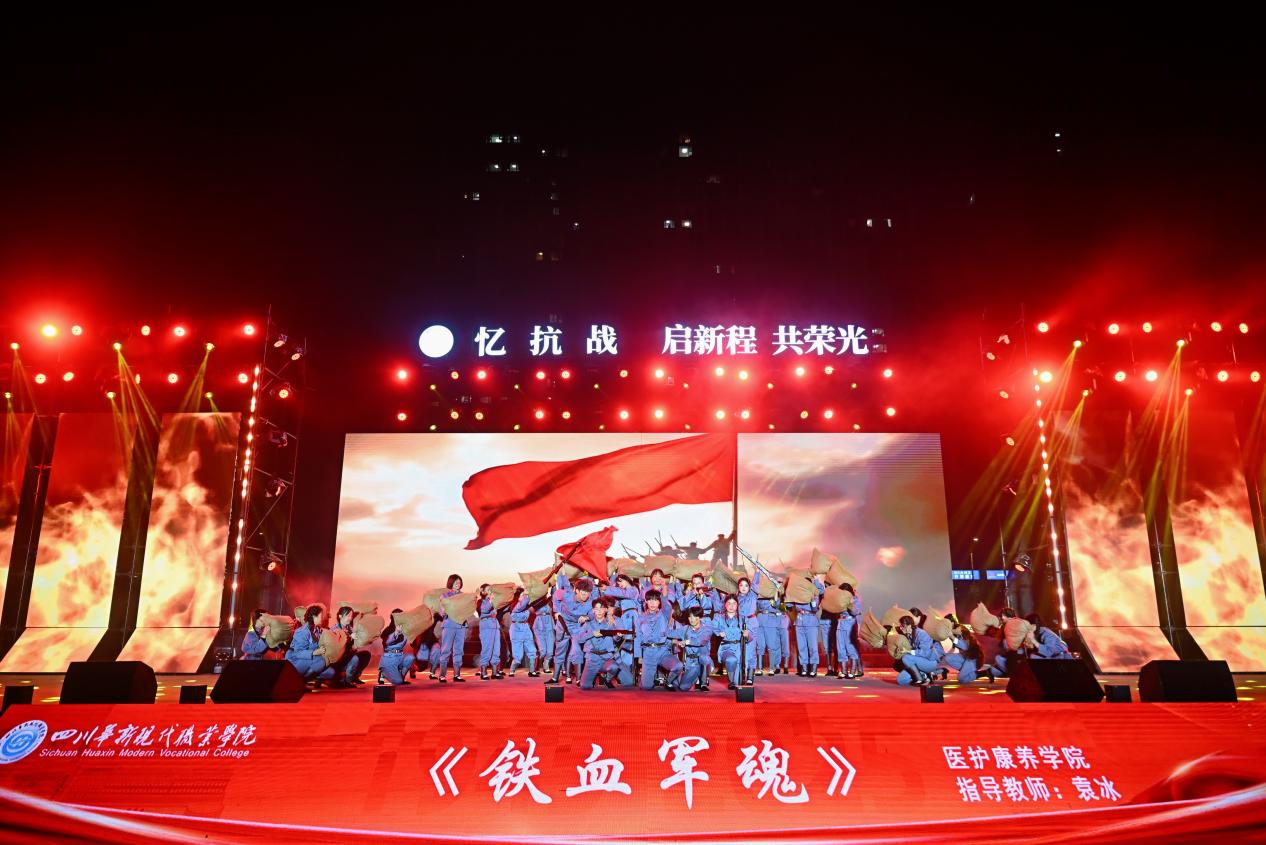 医护康养学院的军旅舞蹈《铁血军魂》以刚劲舞姿再现抗战岁月的坚守;艺术学院的情景诗歌朗诵《那束光》回溯一二·九运动中青年学子的抗争历程,为新生播下红色种子;数字经济学院的《永恒的记忆》则用艺术化表达定格历史瞬间,推动爱国精神在时代浪潮中传承。