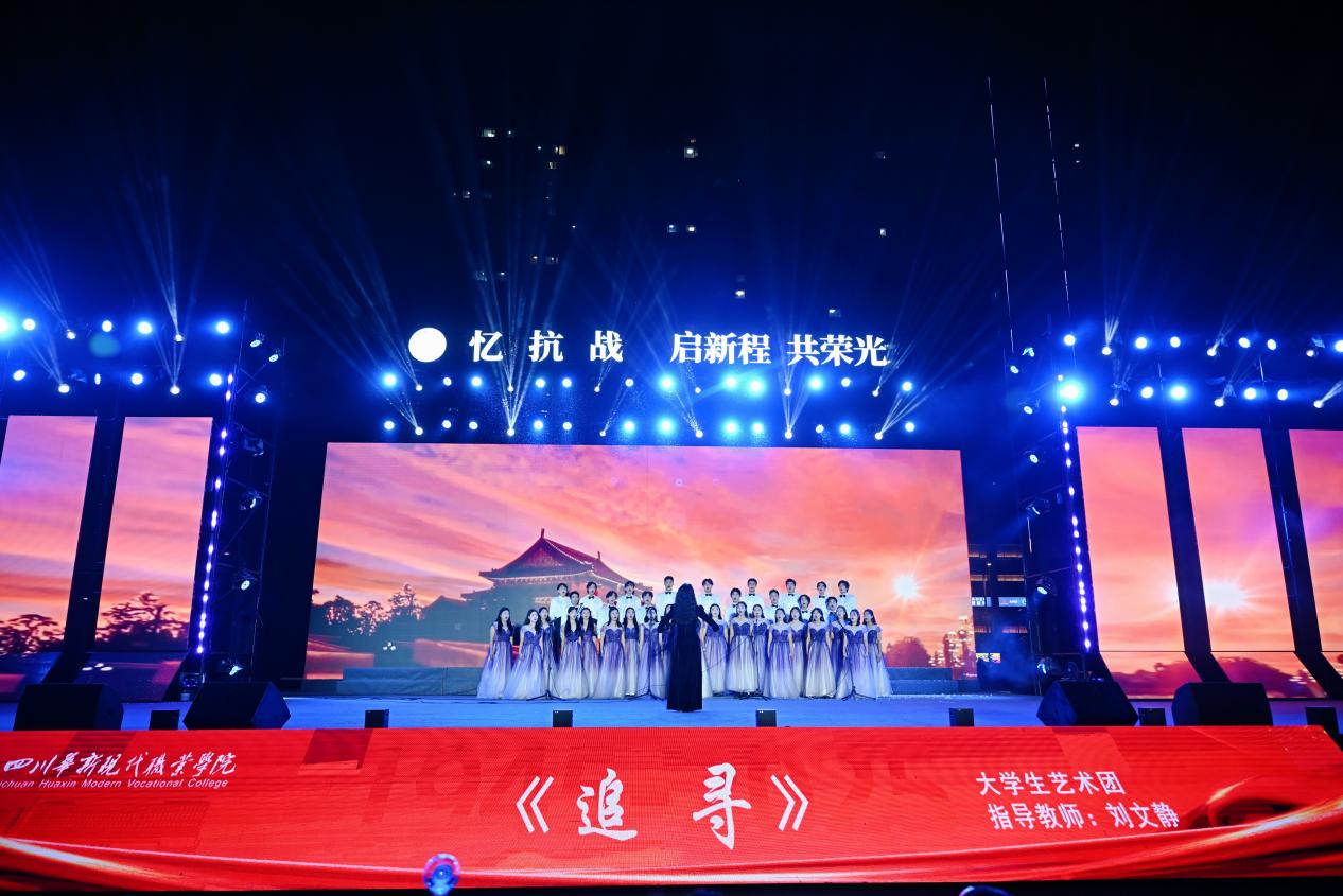 大学生艺术团的合唱《追寻》唱出当代青年对爱国初心的坚守;计算机与大数据学院的情景剧《时代新章》展现青年用科技助力发展的担当;教职工艺术团的民族舞蹈《幸福像花儿一样》将幸福如繁花般在舞台上绽放;教育学院的舞台剧《我爱你中国》将爱国情感具象化;《锦绣巴蜀》以魔术为笔,将一二九精神的热血织入巴蜀锦绣,映照出青春在历史与传承中绽放的赤诚光芒。