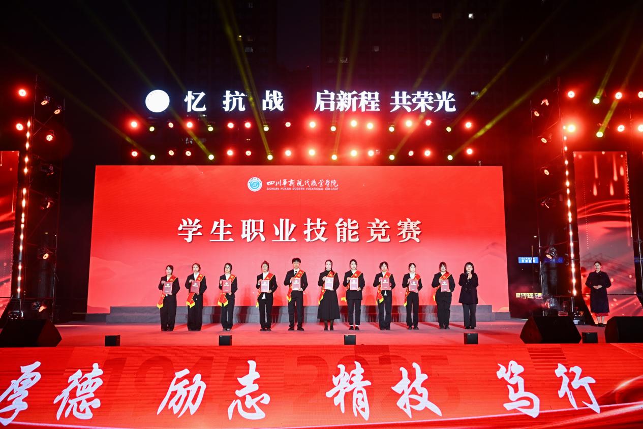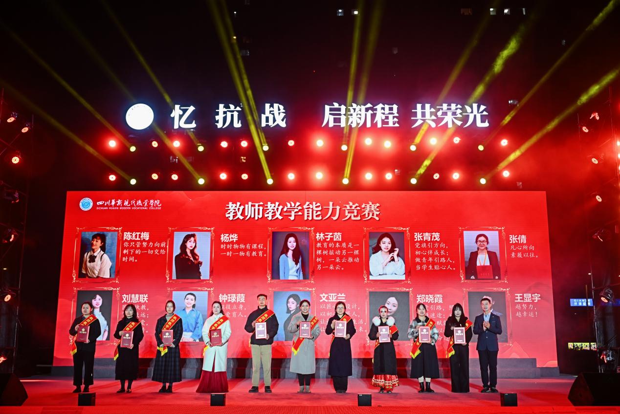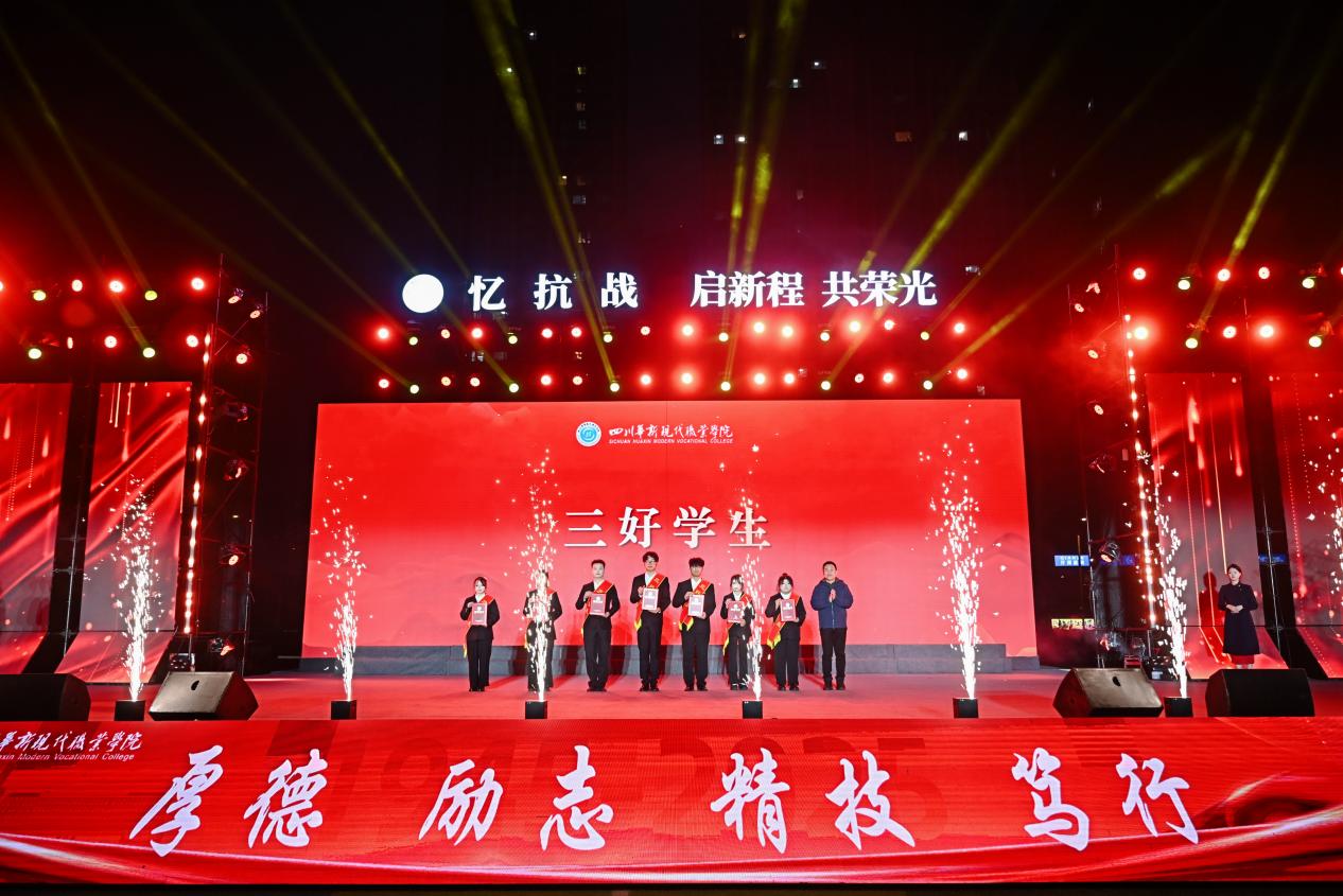11月26日晚,四川华新现代职业学院“忆抗战•启新程•共荣光”2025年纪念一二•九运动暨校园迎新晚会在学院运动场隆重举行。四川开放大学党委书记王玲,四川开放大学党委副书记、四川华新现代职业学院党委书记周利平,学院党委副书记、院长刘斌等全体院领导,中国建设银行成都经济技术开发区支行行长陈磊、副行长李华等特邀嘉宾出席本次活动。学院全体教职工、2024级在校生、2025级新生以及年度获奖个人和集体代表齐聚一堂,在历史与青春的碰撞中凝聚力量,在传承与创新的交融中共启未来。