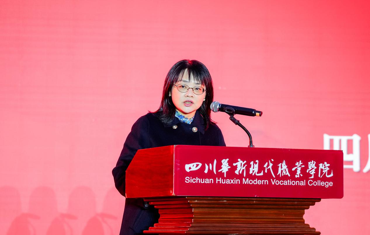 活动初始,周利平为此次活动致辞。她向新生们致以最热烈的欢迎,向在过去一年中努力拼搏、表现优异的师生们表示衷心祝贺,为今晚活动默默付出的每一位师生表示感谢。她希望同学们明确学习的目的,筑牢成长的根基;追求技术的精湛,打造立身的资本;保有奋斗的勇气,锤炼坚韧的品格。作为新时代的中国青年,华新学子要手握技能,心怀梦想,在实现个人价值的同时,为国家发展贡献青春力量。