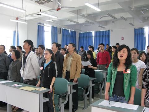 图一:在庄严的国歌声中,我院工会成立暨首届第一次会员大会拉开帷幕