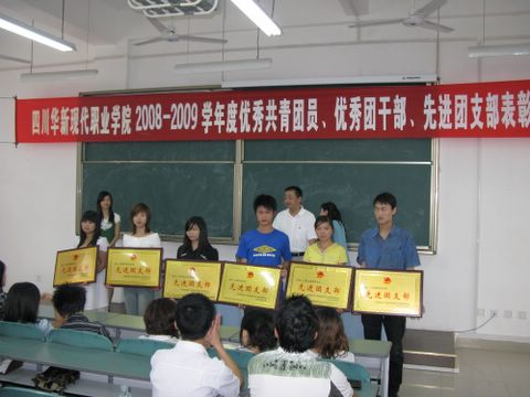 在庄严的国歌声中,表彰大会拉开了序幕。学生处副处长任燕宣读了《关于表彰2008-2009学年度“优秀共青团员”、“优秀团干部”和“先进团支部”的决定》,党委副书记唐明建向所有的获奖支部和同学颁发了奖牌和证书。08装饰施凯杰代表全体获奖同学发言,他表示,今天的荣誉已经成为过去,在今后的学习和工作中,一定会一如既往的严格要求自己,在党组织的引领下,好好学好专业知识,继续干好团的工作。