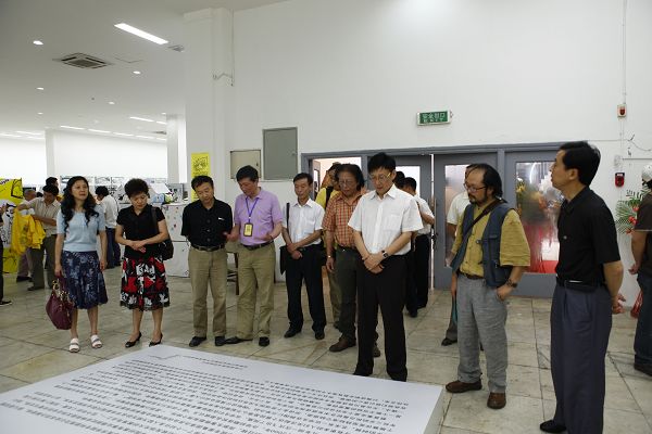图片一:华新职业学院领导、川音美院领导及教师代表观看作品展