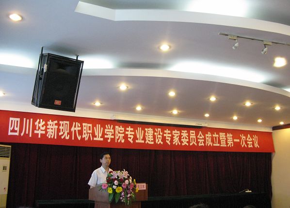 最后,四川新华文轩连锁股份有限公司中盘事业部副总经理刘定国博士、重庆市群众艺术馆国家一级演员、著名表演艺术家李伯清、四川华新现代职业学院艺术教育特别顾问、川音成都美院院长马一平教授分别代表企业界、文化界、教育界作了重要发言,他们都表示,将尽自己的力量为实现我院“教学做”合一营造良好的环境,为推进校企合作、落实工学结合牵线搭桥,为提升学院的综合实力和核心竞争力搭建平台。专家委员会将积极为学院发展、专业教学改革、校企深度合作献计献策。