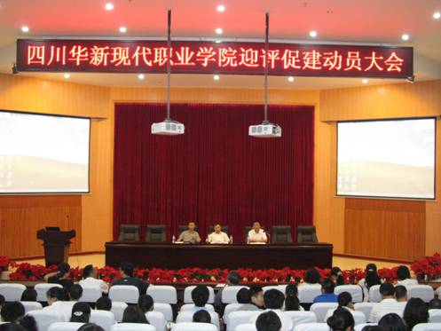 72下午,四川华新现代职业学院“迎评促建”动员大会在学术报告厅隆重召开。院长李建川、副书记唐明建、副院长刘斌及全院教职工参加了此次会议。会议由唐书记主持。