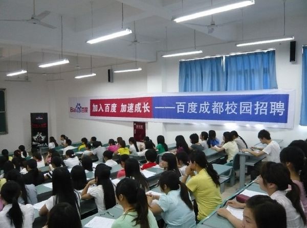 为了推进毕业生就业工作,帮助企业选到合格毕业生,2010年6月24日下午2点,我院经济管理系在教学楼107教室开展了百度成都校园专场招聘会。我院校企合作单位成都百都科技有限公司—百度(成都)地区营销服务中心招聘经理张宝刚主持现场宣讲和招聘。