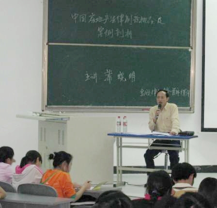 【经济管理系报道】 2008年4月9日晚,经济管理系荣幸地邀请到四川省政协委员、成都市政府立法委员会委员、美中国际交流促进会特别顾问、四川金领律师事务所首席律师、西南政法大学法学硕士研究生蒲晓明主任来校举办讲座。蒲主任以“中国房地产法律制度概论及案例剖析”为主题,就房地产企业项目的立项、开发到建设、完成、销售、物业管理等全过程所涉及的一系列法律法规、政策和方针进行了详细的分析和讲解,对目前出台的经济适用房的利弊问题做了深入剖析。同时,他用具体生动的案例说明了现在房地产开发存在的问题,如买房热、炒房热等,并介绍和分析了国外的房地产动态。讲座过程中,同学们踊跃地提出自己的看法,积极与蒲主任进行交流互动。此次讲座深入浅出,见解独到,赢得了同学们的阵阵掌声。