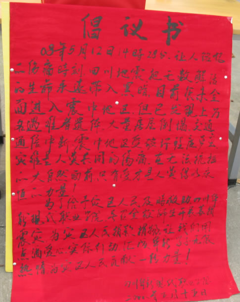 图一:四川华新现代职业学院抗震救灾捐助倡议书