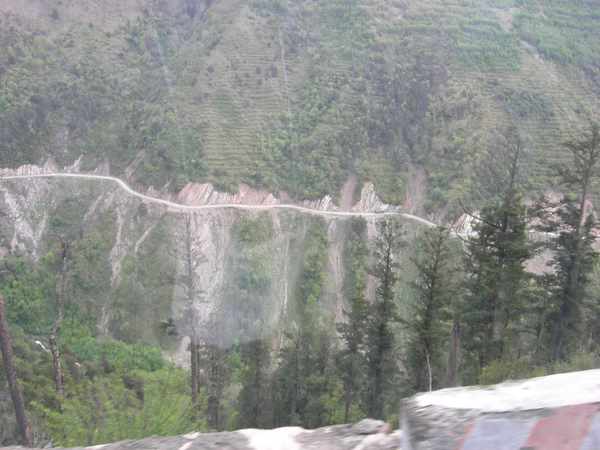 图二:翻越夹金山途中,我们的汽车小心行驶着