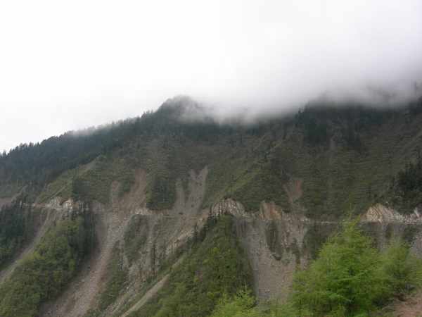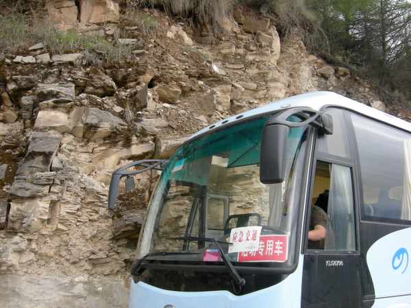 仅仅休整了三个多小时,我们又接令踏上了征程,迎接下一个挑战------翻越夹金山。夹金山,红军长征翻越的第一座雪山,留下了无数革命先烈的足迹,今天我们将重走这段长征路,完成我们的壮举。山路蜿蜒崎岖,从山底盘旋而上,两旁是高耸的山壁和一眼望不到底的深渊,汶川大地震和不断的山体滑坡使这段路变得更加艰难,各地的大型救灾车辆使本来就狭窄的公路变得更加拥挤,让我们真正体会到了什么是“蜀道难”,这时错车成为了最大的困难。在一次惊险的错车中,我们救援队的金龙客车被挤向了悬崖边,和旁边的护栏发生了小小的亲密接触,好在有惊无险。大家开玩笑说:“如果这次我们的客车翻下去了,肯定是连车带人一个零件都找不到”。