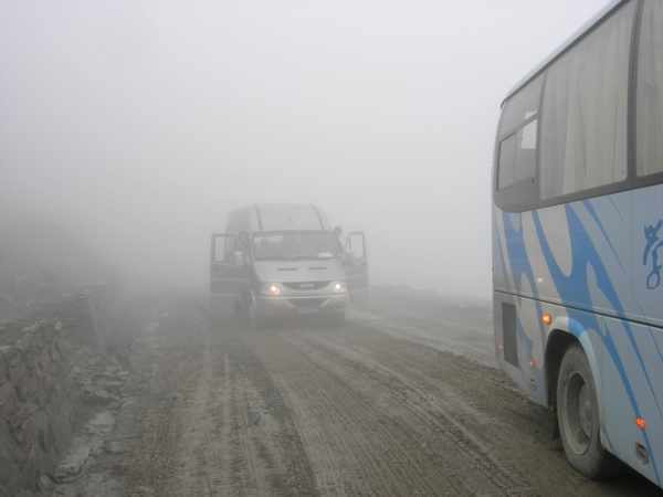 图七:在翻越夹金山途中,道路的能见度只有5米左右